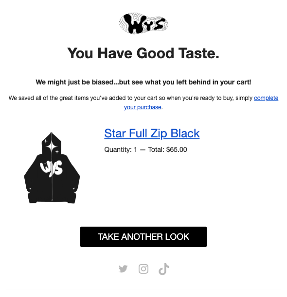 If your customer still doesn’t purchase from your reminder then there’s probably another reason why they didn’t purchase. Is it because the price was too high? They didn’t see the value? Or was it because they didn’t trust the reputation of the brand? Your next emails should focus on addressing these problems with coupons or reviews of the product.
