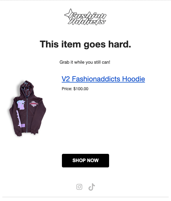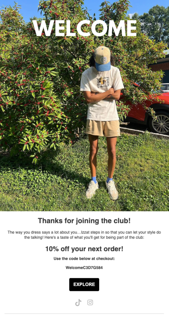 These first few emails are the most important emails for your clothing brand. Make a good impression and provide them with information on what they should expect from your brand’s emails. For example, tell them you will send them weekly emails with updates and discounts.